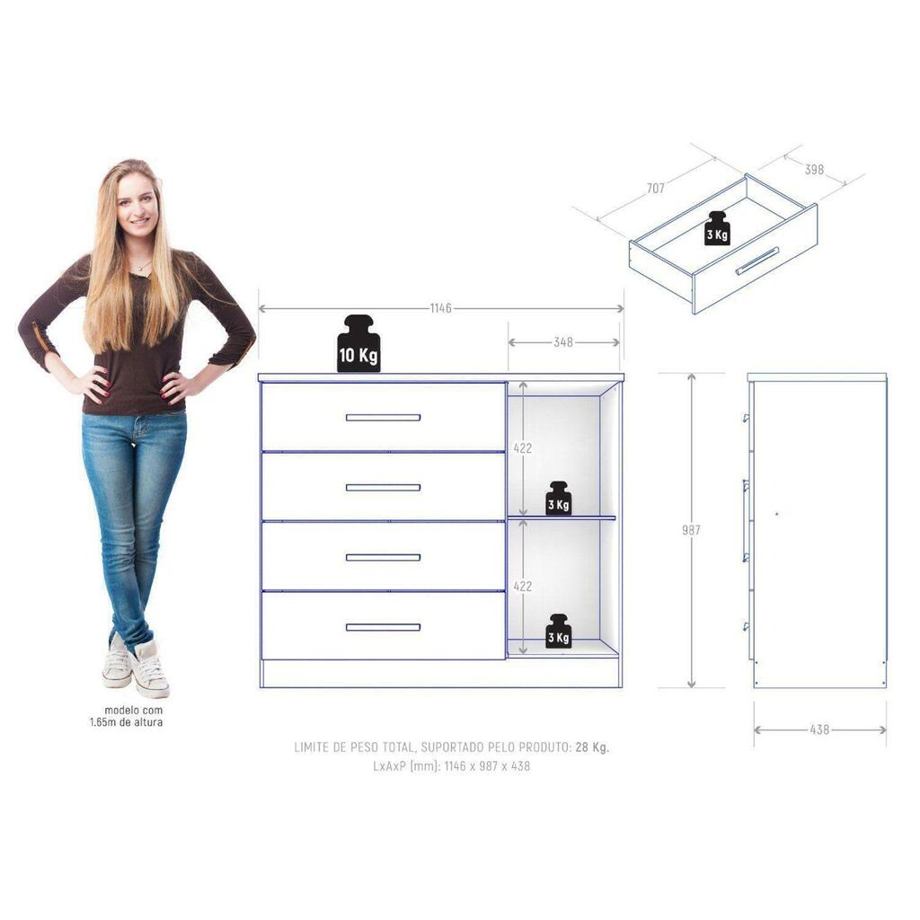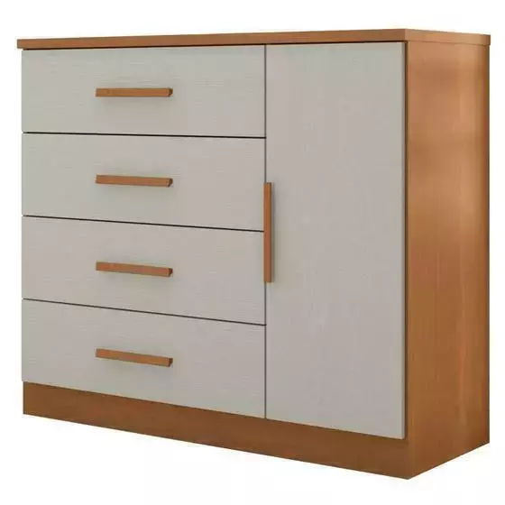 A Cômoda Ginna une praticidade e estilo em um móvel funcional. Com design moderno, tampo reforçado em MDP de 25mm e acabamento nas cores Cinamomo Areia ou Branco Absoluto, oferece ótimo espaço interno e gavetas com corrediças metálicas que garantem durabilidade e fácil deslizamento.