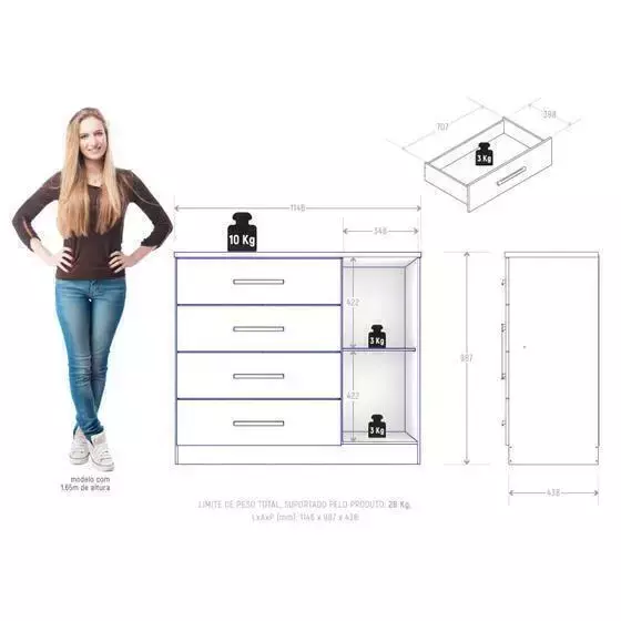 Dimensões: Largura 1146 mm | Altura 987 mm | Profundidade 438 mm