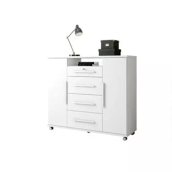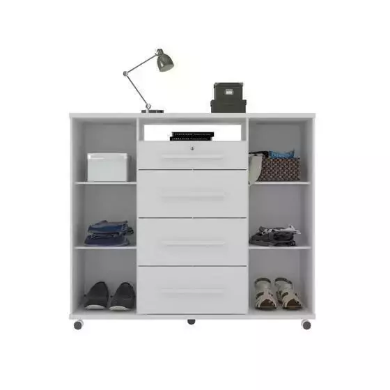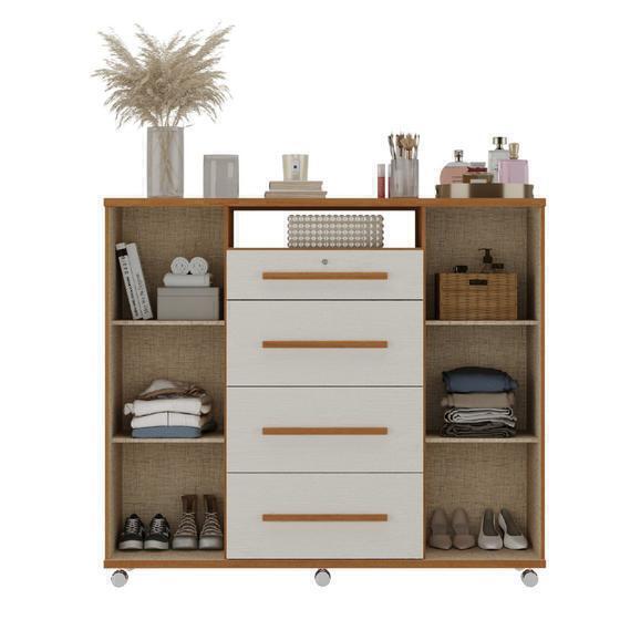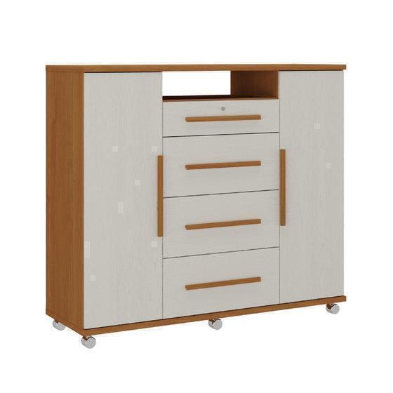 A Cômoda Veneza é ideal para quem busca praticidade e organização com um toque moderno. Com amplo espaço interno, rodízios cromados que facilitam a movimentação e acabamento nas cores Cinamomo Areia ou Branco Absoluto, une funcionalidade e elegância em um só móvel.