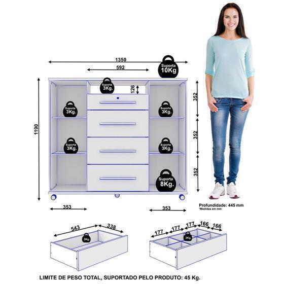 Dimensões: Largura 1350 mm | Altura 1190 mm | Profundidade 448 mm