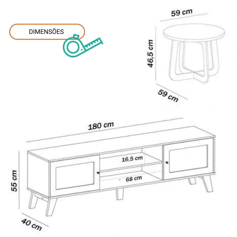 Medidas Mesa de Centro: 47x59x59 cm (altura x largura x profundidade)