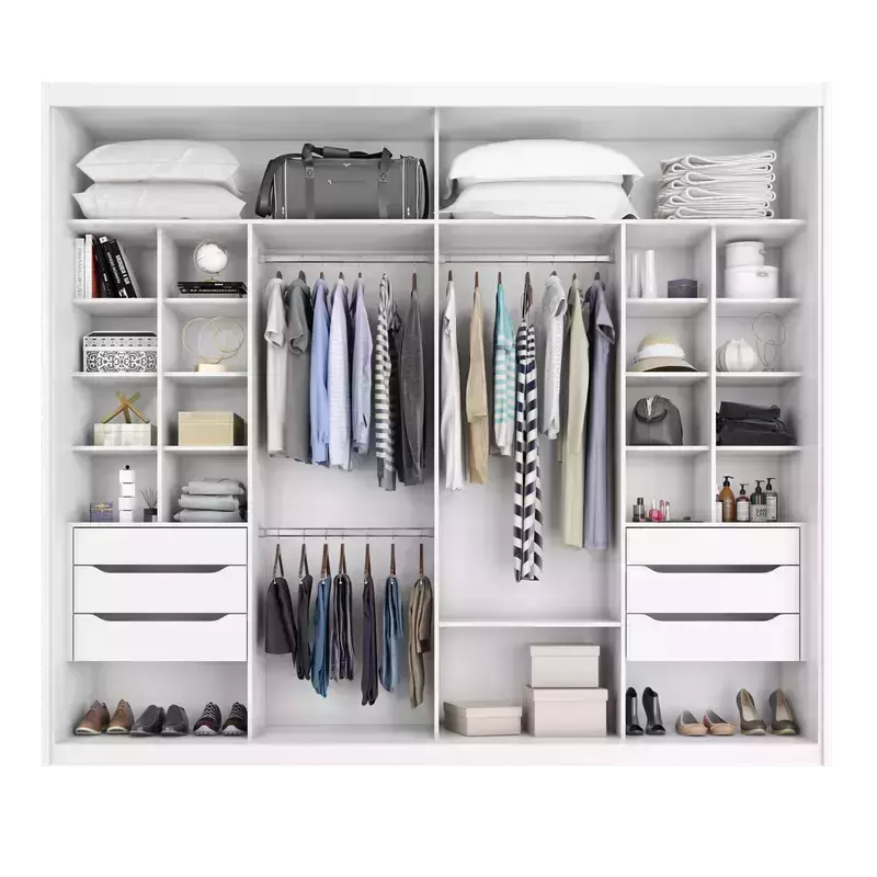 Este Guarda-roupa você vai amar! Possui divisões funcionais que possibilita uma melhor organização, ideal para dar o ar delicado e sofisticado para o ambiente que você merece! Fabricado em 100% MDF, sendo a estrutura em MDF de 15mm, laterais do roupeiro com encabeçamento de MDF de 25mm, 6 gavetas com corrediças telescópicas, 2 gavetas com divisão interna, amplo espaço interno para que você possa organizar seus pertences, roupas de cama, vestuários e calçados, possui colmeia com muitas divisões, cabideiros em alumínio e espaço para roupas longas. Vamos deixar seu quarto muito mais charmoso! Aproveite!