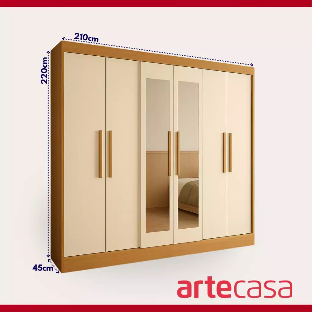 O Guarda-Roupa Florença combina design moderno e funcionalidade, ideal para manter seu quarto sempre organizado. Fabricado em MDP de 15mm, conta com 6 portas, 2 gavetas com corrediças telescópicas e cabideiros em alumínio para melhor aproveitamento do espaço. Os puxadores em MDF combinam com o acabamento em pintura U.V., proporcionando um visual elegante
