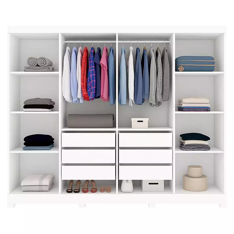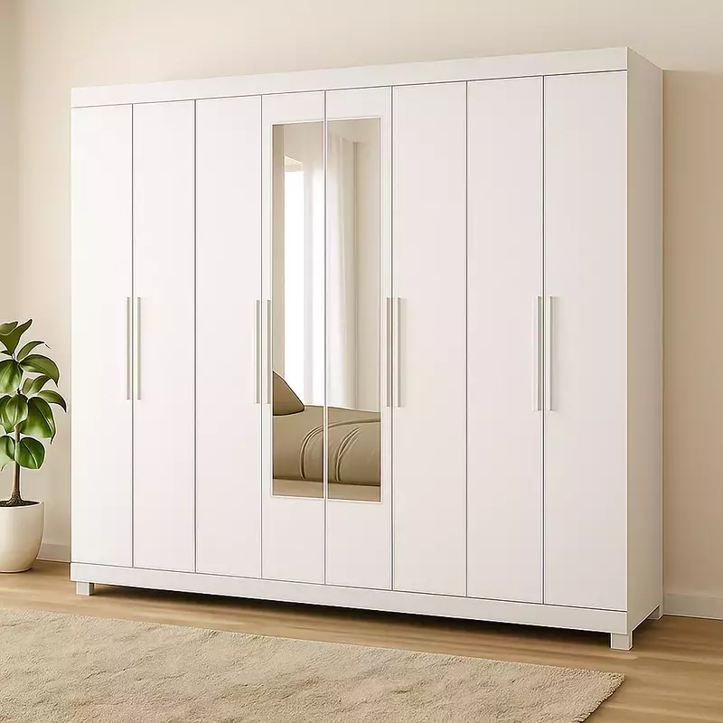 Nada melhor que ter seu ambiente de descanso organizado e em grande estilo. O Guarda Roupa Itália foi desenvolvido para garantir que suas roupas e acessórios estejam bem cuidados. Fabricado 100% MDF com oito portas e sei gavetas.