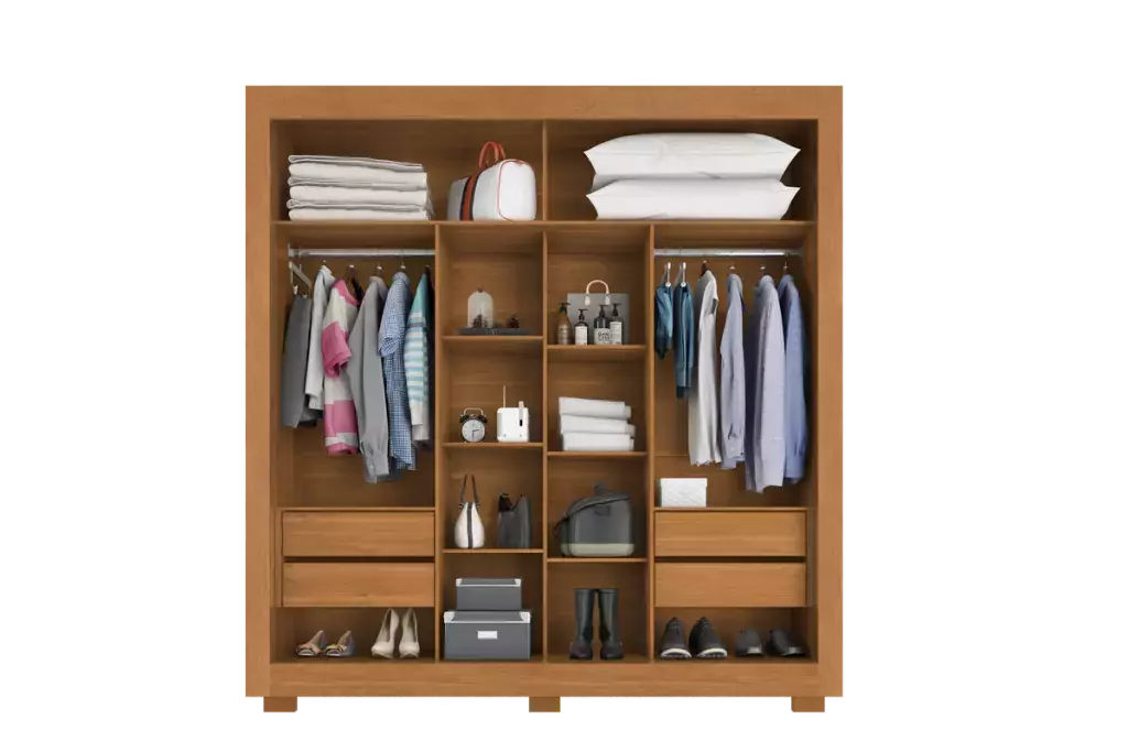 O Guarda Roupa Platinum é um produto com design moderno e funcional, perfeito para quem busca organizar e otimizar o espaço. Contém duas portas de correr, com excelentes repartições, seis prateleiras, maleiro, além de quatro gavetas com corrediças telescópicas que possibilitam maior amplitude de abertura. Puxadores em MDF, cabideiro metálico e seis pés, ideal para facilitar a limpeza embaixo do guarda roupa!
