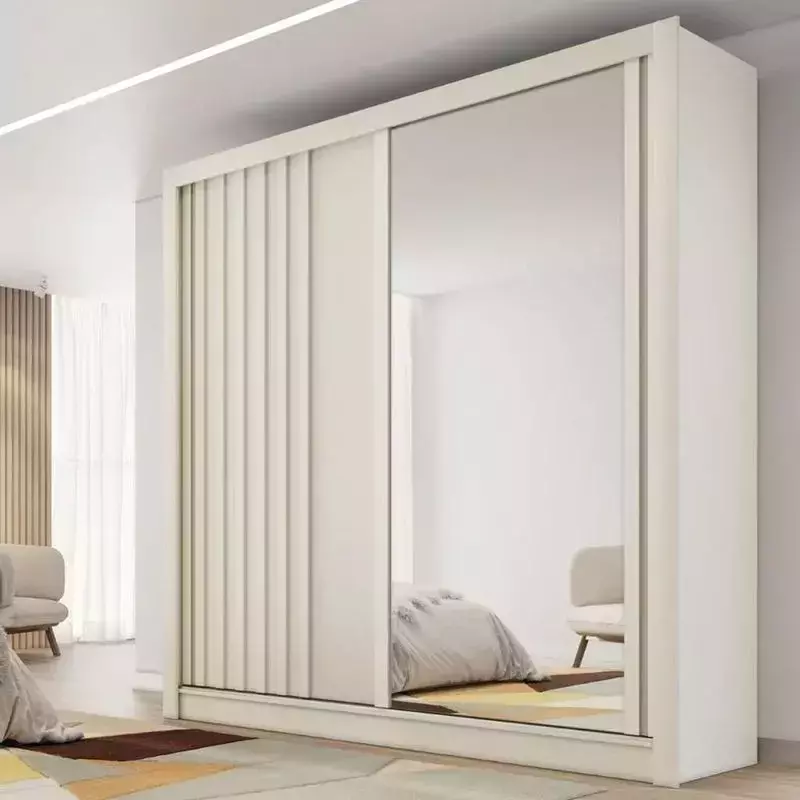 O Guarda Roupa Ripado Logan com Espelho 2 Portas de Correr, feito inteiramente de MDF, possui duas portas de correr uma espelhada e outra com detalhes ripados. Ele oferece uma ótima divisão interna, amplo espaço interno com diversas prateleiras e 4 gavetas internas equipadas com corrediças telescópicas. Possui dois espaços de cabideiro em alumínio para armazenar todas as suas roupas.