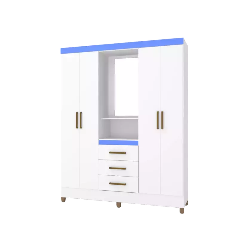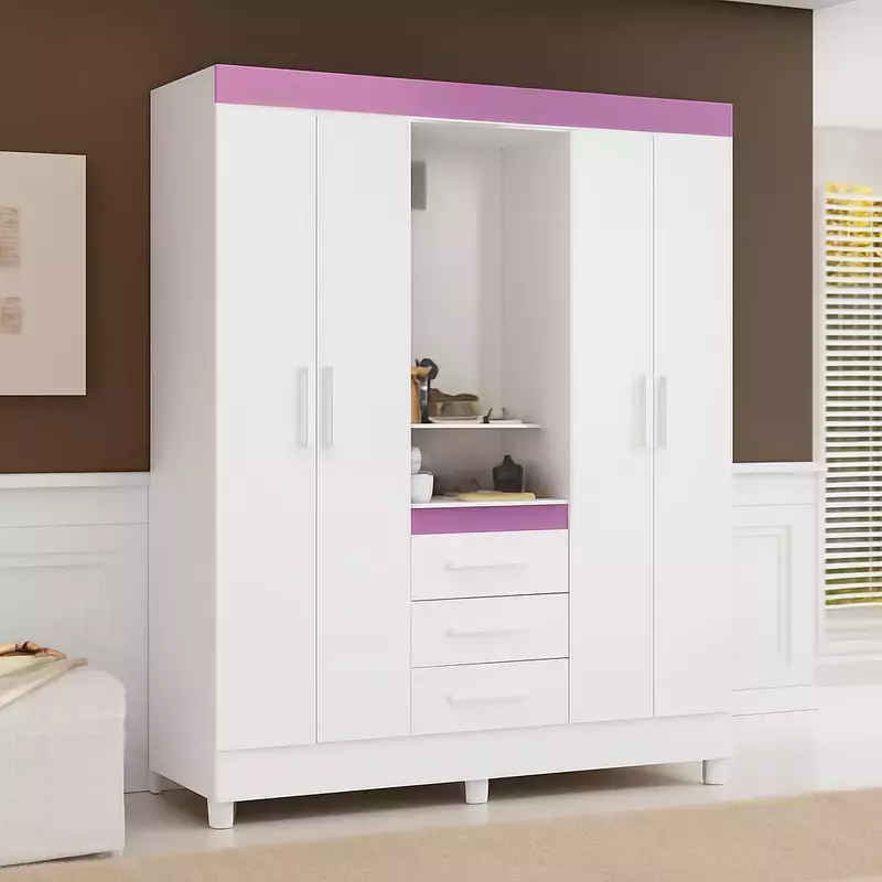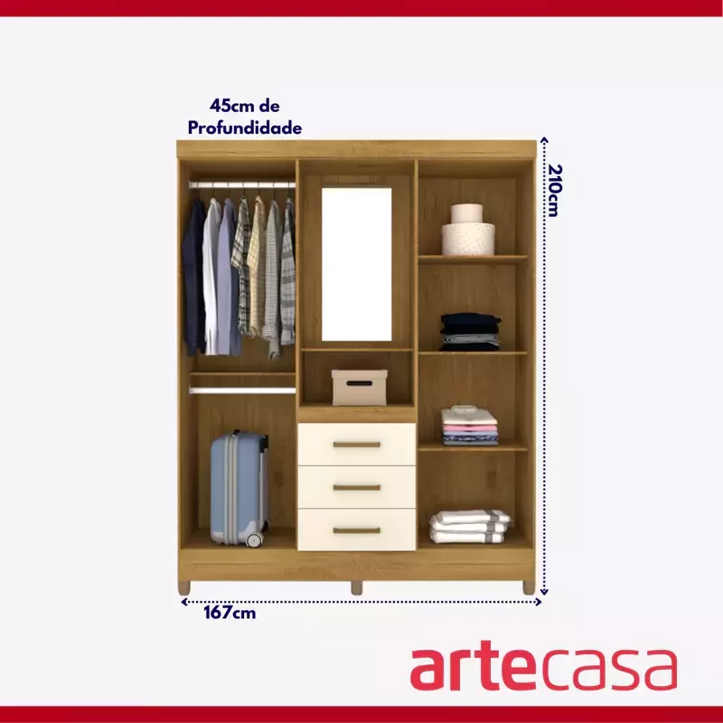 Seguindo as tendências de mercado e buscando atender consumidores que anseiam por um produto completo, com qualidade e modernidade foi projetado o Guarda Roupa Vicente, com um amplo espaço interno divido entre cabideiros, gavetas, penteaderia e prateleiras ele facilita a sua organização de roupas e acessórios no dia a dia.